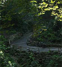 Bestimmende Parkelemente sind ein engmaschiges Wegenetz, die felsige Wolfsschlucht, die von der Rennstrecke früher auf einer steilen Naturtreppe bezwungen wurde, sowie der große Wasserfall, der 24 Meter tief in Richtung Großbeerenstraße hinabfließt.